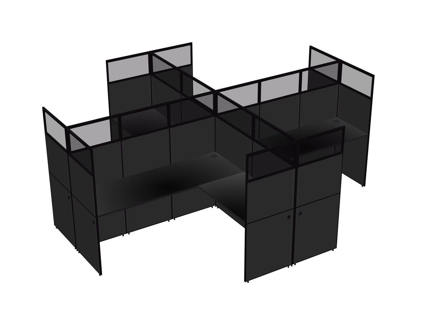 Black L-shaped Quad Office Cubicles