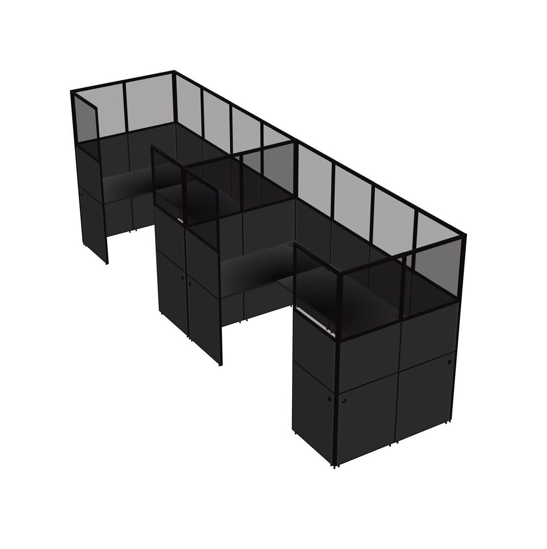 Black U-shaped Panel System For 2 Person For 2 User(s)