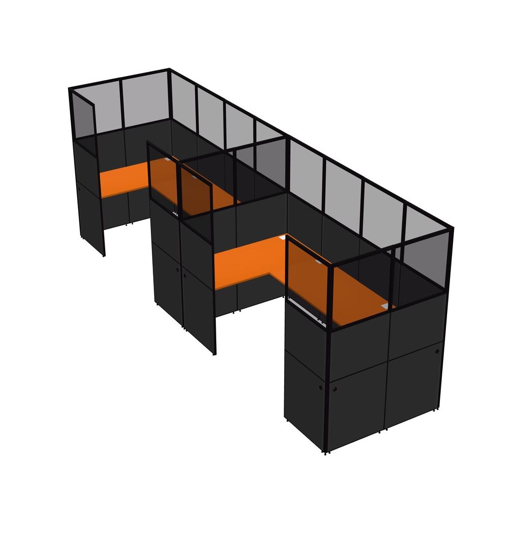 Orange U-shaped Panel System For 2 Person For 2 User(s)