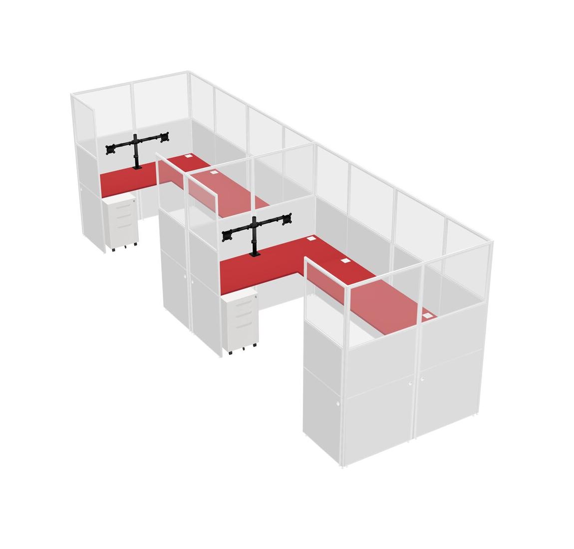 Prism Red U-shaped Panel System For 2 Person + Monitor Arm (double Arms) + Metal Mobile Drawers For 2 User(s)