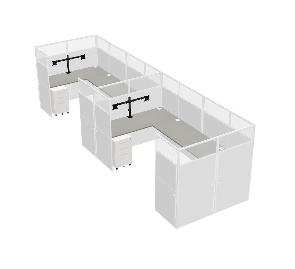 Grey Shadows U-shaped Panel System For 2 Person + Monitor Arm (double Arms) + Metal Mobile Drawers For 2 User(s)