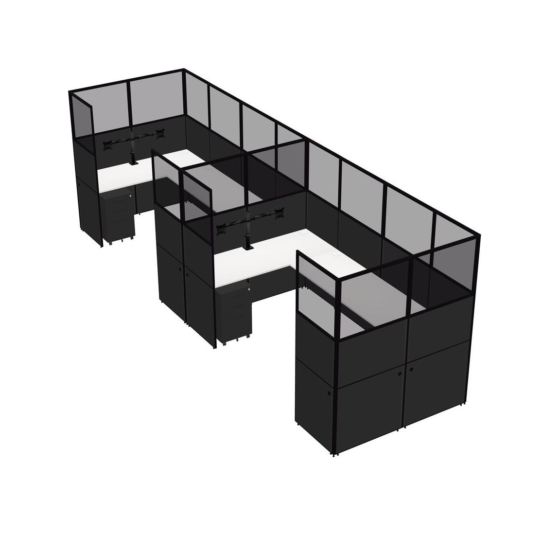 White U-shaped Panel System For 2 Person + Monitor Arm (double Arms) + Metal Mobile Drawers For 2 User(s)