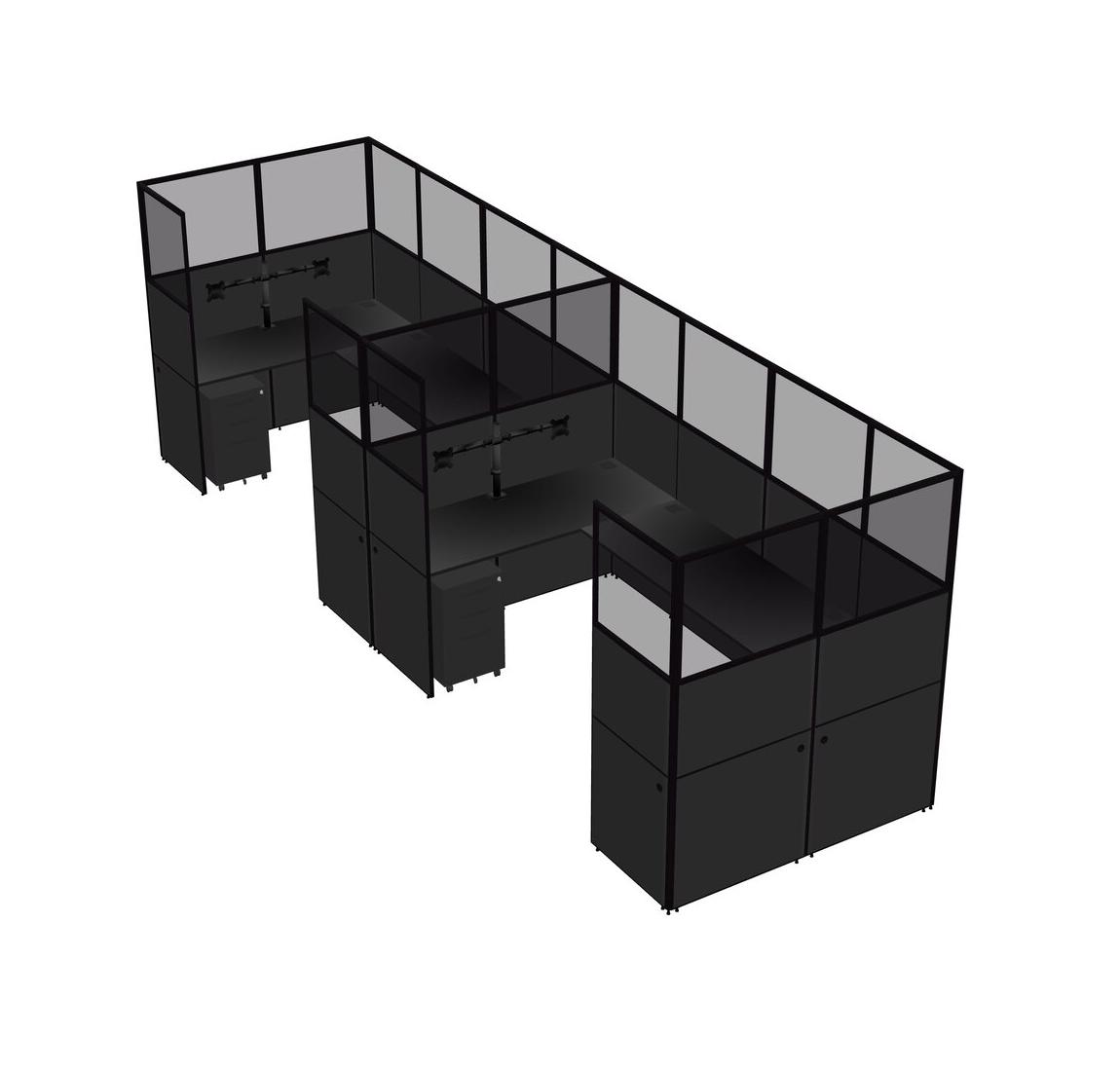 Black U-shaped Panel System For 2 Person + Monitor Arm (double Arms) + Metal Mobile Drawers For 2 User(s)