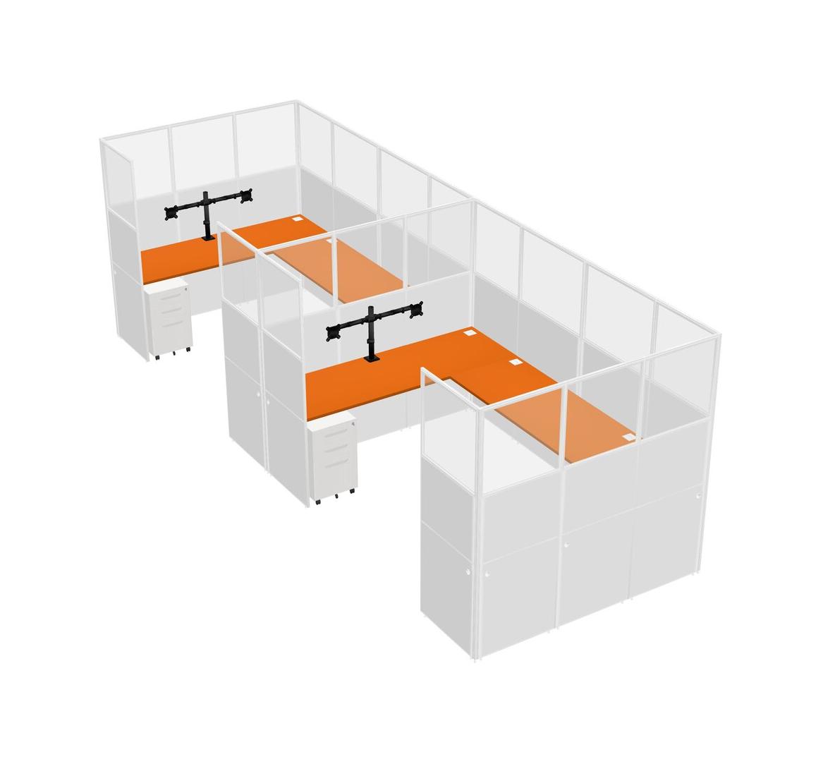 Orange U-shaped Panel System For 2 Person + Monitor Arm (double Arms) + Metal Mobile Drawers For 2 User(s)