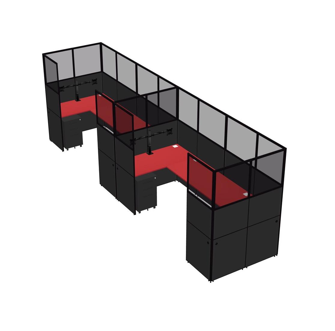 Prism Red U-shaped Panel System For 2 Person + Monitor Arm (double Arms) + Metal Mobile Drawers For 2 User(s)