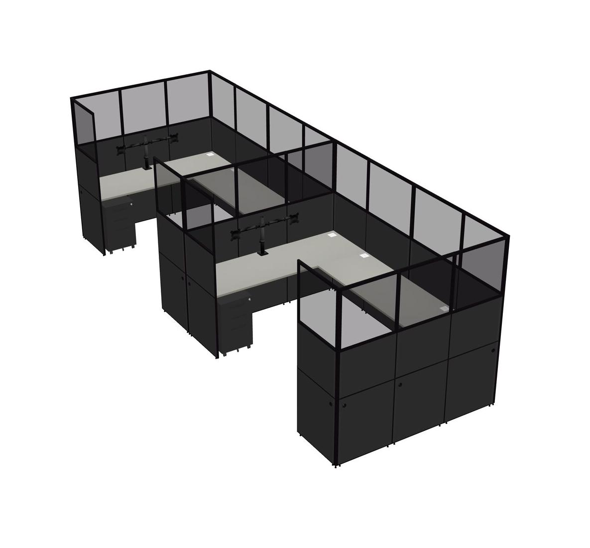 Grey Shadows U-shaped Panel System For 2 Person + Monitor Arm (double Arms) + Metal Mobile Drawers For 2 User(s)