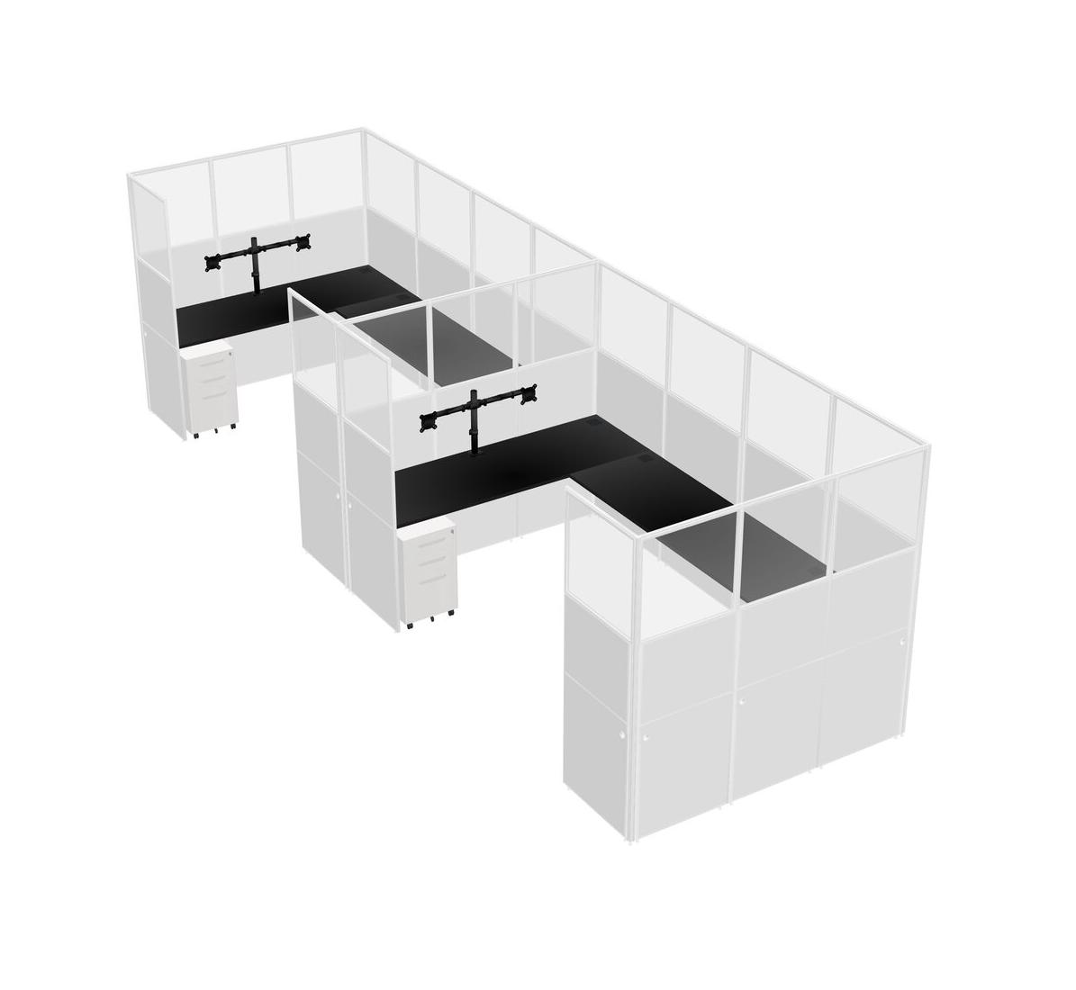 Black U-shaped Panel System For 2 Person + Monitor Arm (double Arms) + Metal Mobile Drawers For 2 User(s)