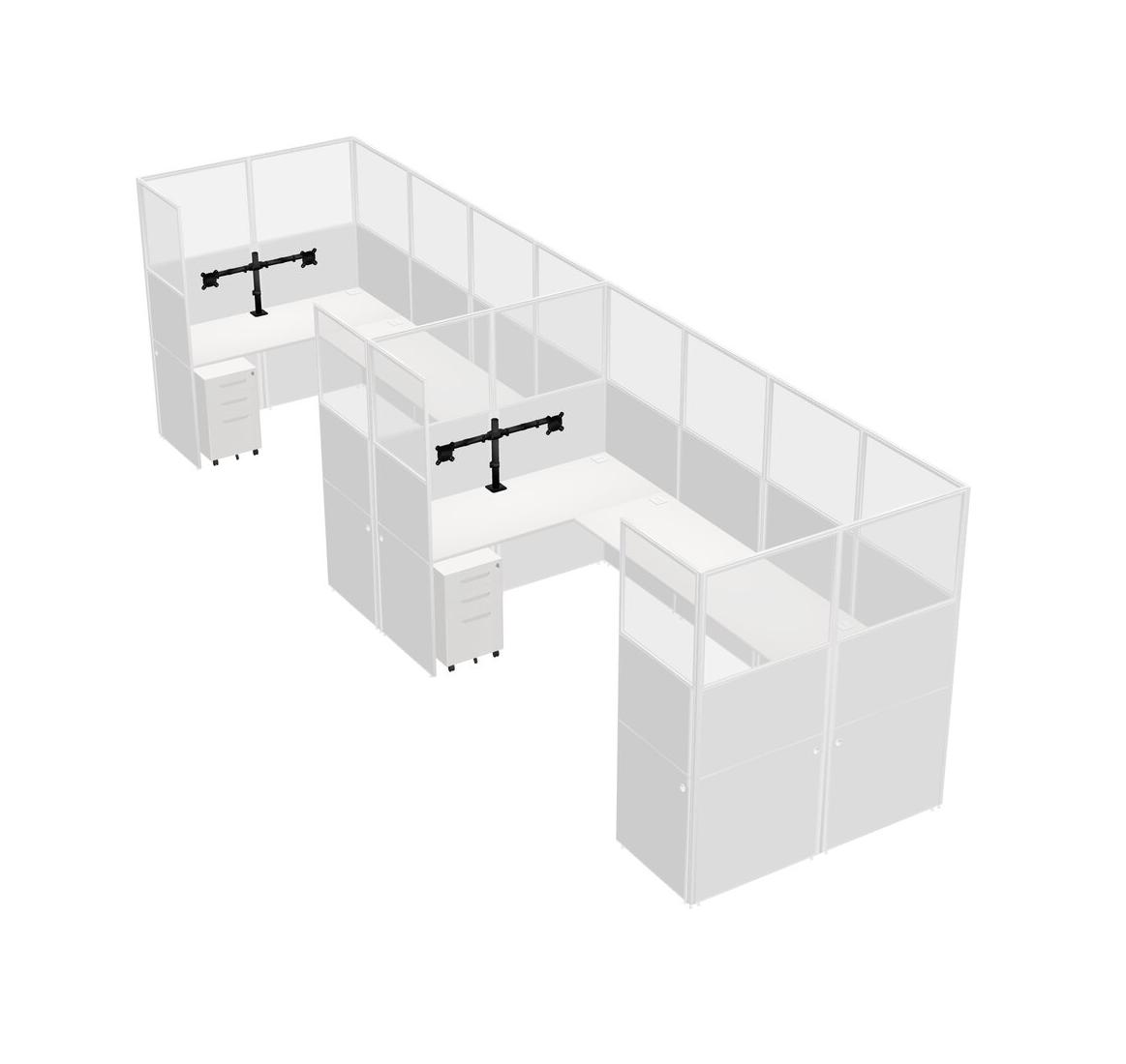 White U-shaped Panel System For 2 Person + Monitor Arm (double Arms) + Metal Mobile Drawers For 2 User(s)
