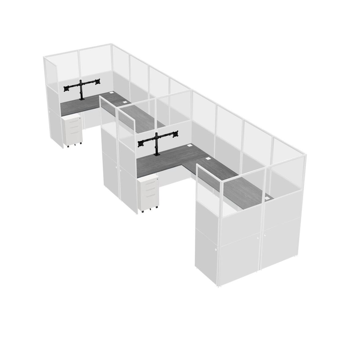 Grey U-shaped Panel System For 2 Person + Monitor Arm (double Arms) + Metal Mobile Drawers For 2 User(s)