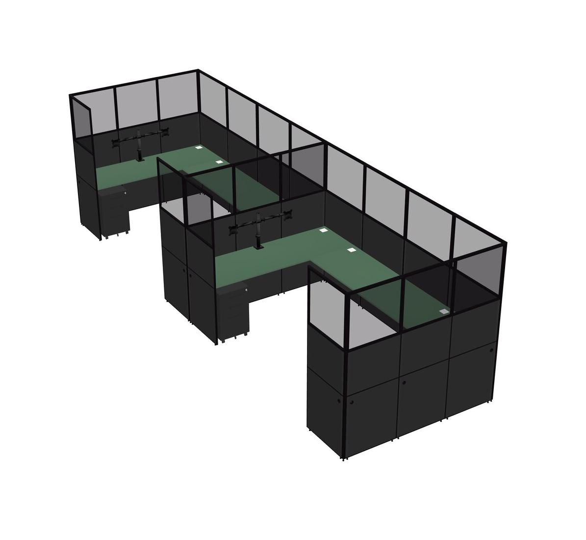 Green U-shaped Panel System For 2 Person + Monitor Arm (double Arms) + Metal Mobile Drawers For 2 User(s)