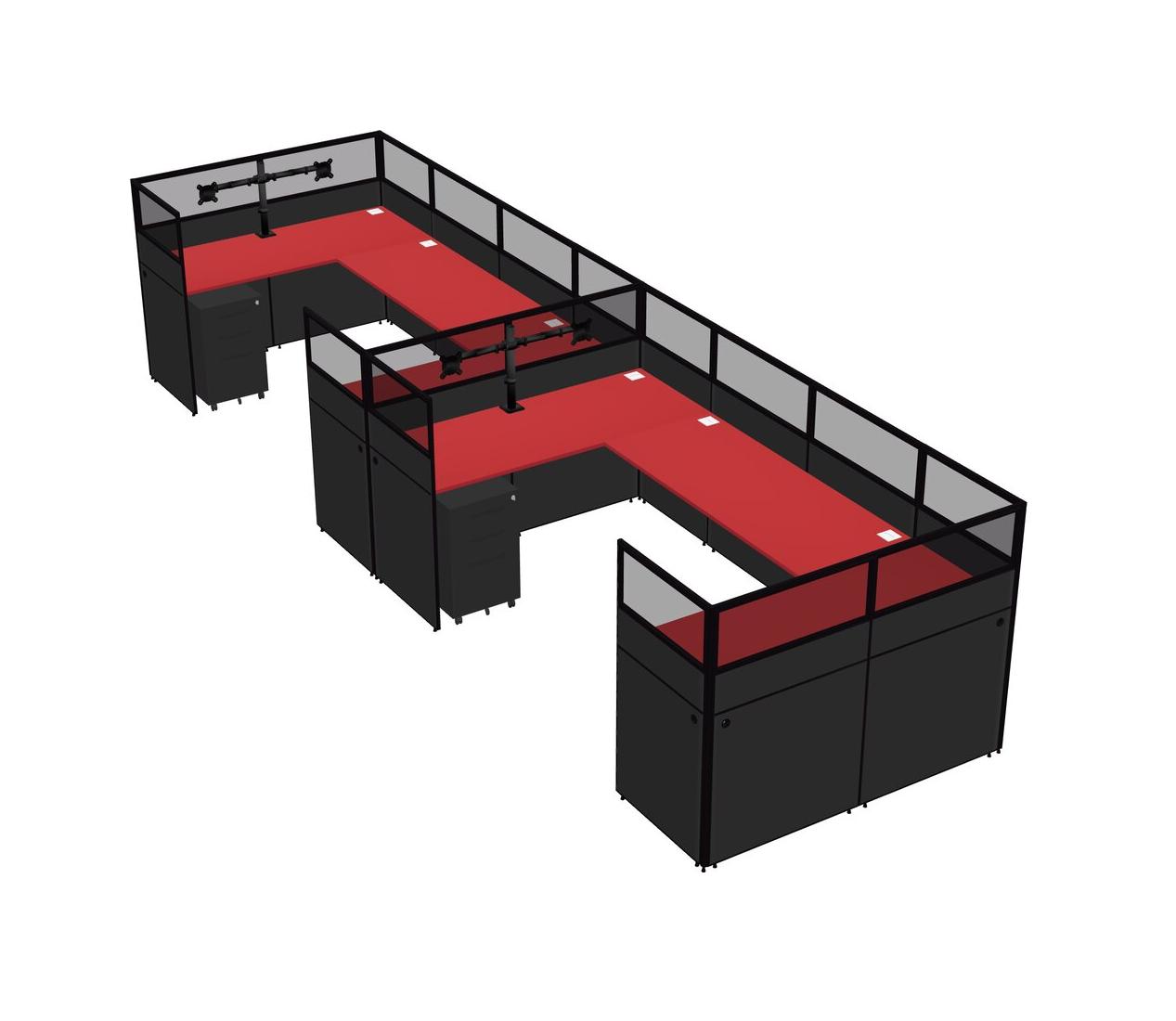 Prism Red U-shaped Panel System For 2 Person + Monitor Arm (double Arms) + Metal Mobile Drawers For 2 User(s)