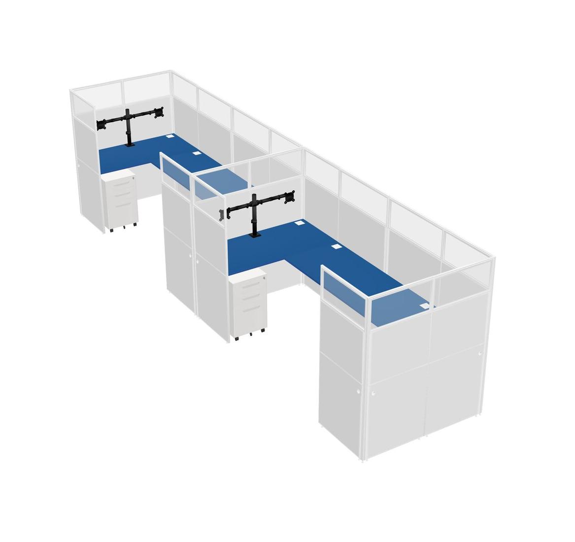 Prism Blue U-shaped Panel System For 2 Person + Monitor Arm (double Arms) + Metal Mobile Drawers For 2 User(s)