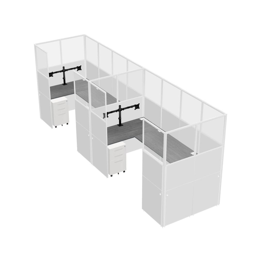 Grey U-shaped Panel System For 2 Person + Monitor Arm (double Arms) + Metal Mobile Drawers For 2 User(s)