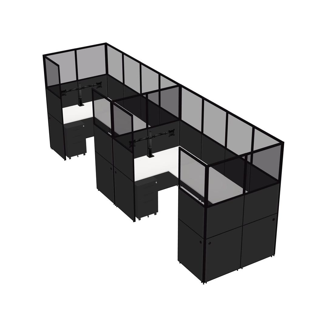 White U-shaped Panel System For 2 Person + Monitor Arm (double Arms) + Metal Mobile Drawers For 2 User(s)