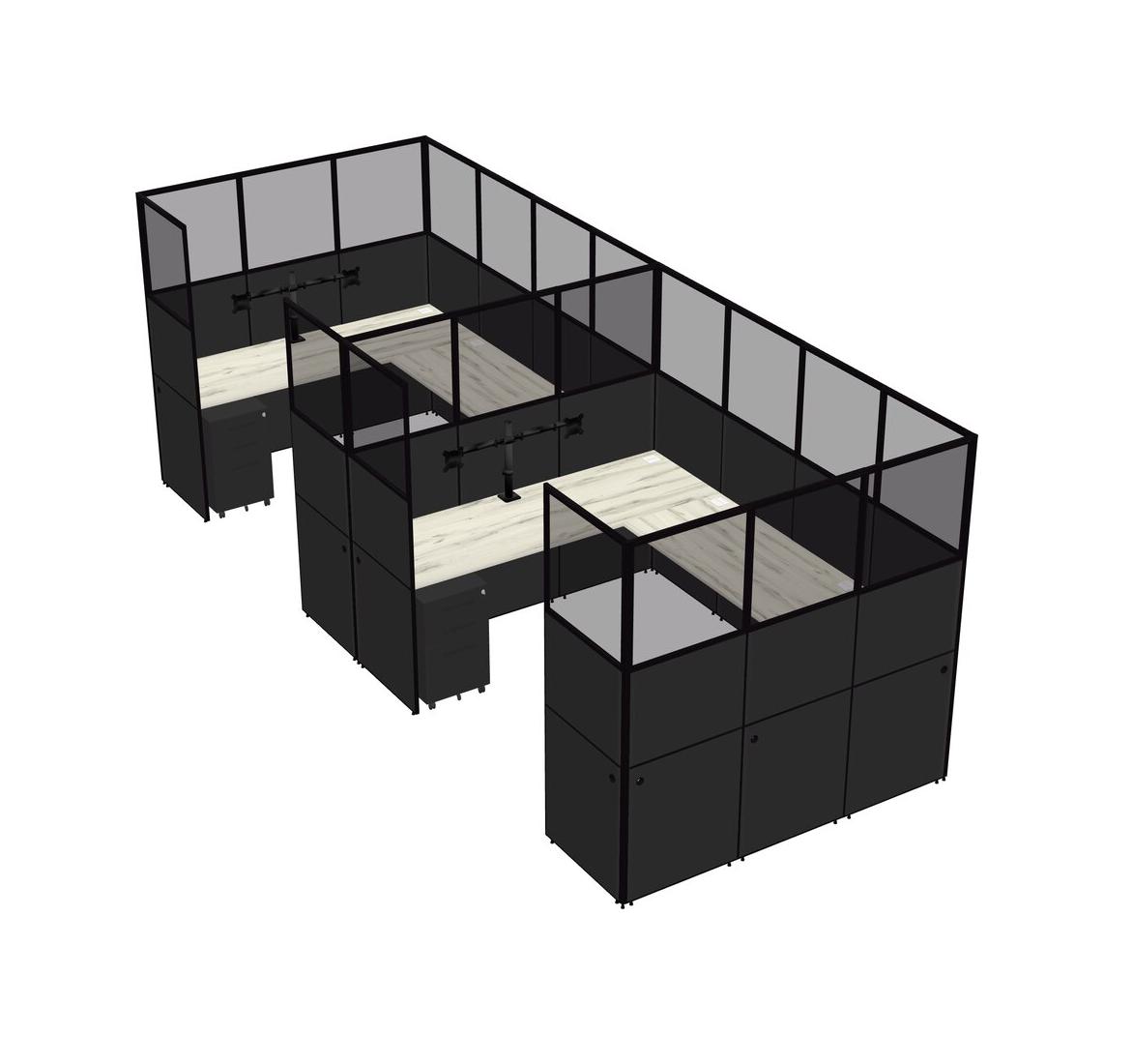 Heinne Holz U-shaped Panel System For 2 Person + Monitor Arm (double Arms) + Metal Mobile Drawers For 2 User(s)
