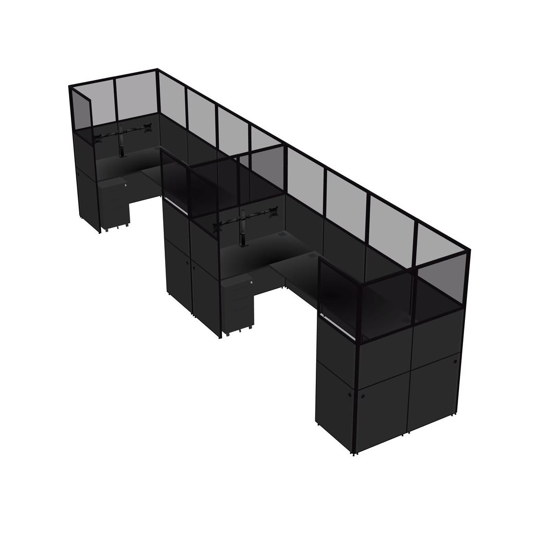 Black U-shaped Panel System For 2 Person + Monitor Arm (double Arms) + Metal Mobile Drawers For 2 User(s)