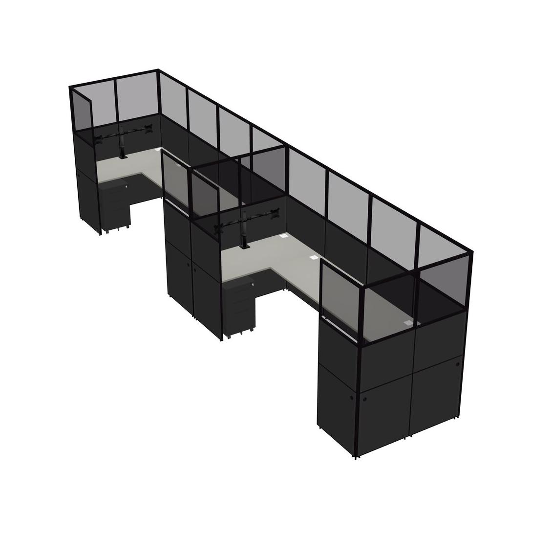 Grey Shadows U-shaped Panel System For 2 Person + Monitor Arm (double Arms) + Metal Mobile Drawers For 2 User(s)