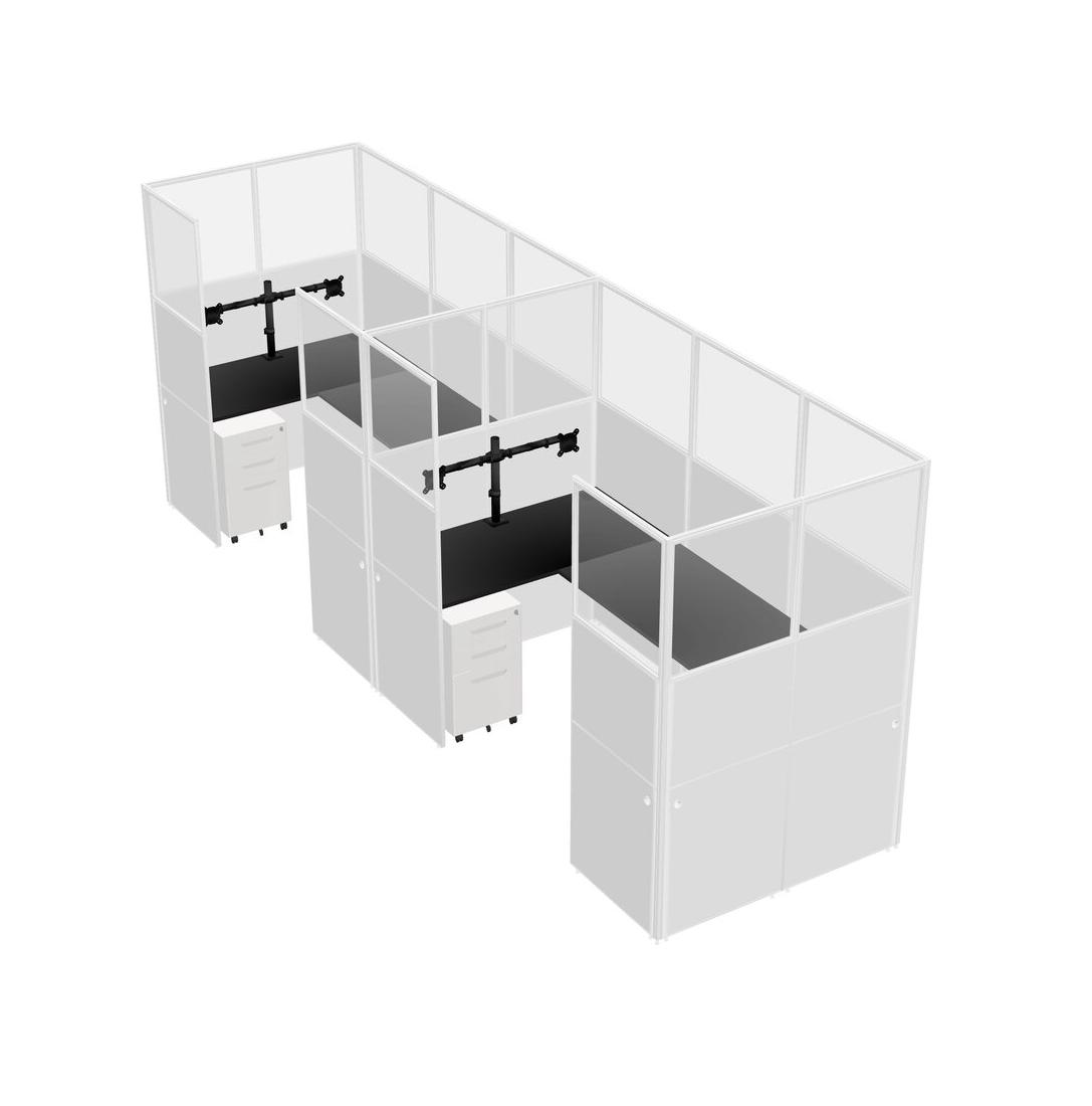 Black U-shaped Panel System For 2 Person + Monitor Arm (double Arms) + Metal Mobile Drawers For 2 User(s)
