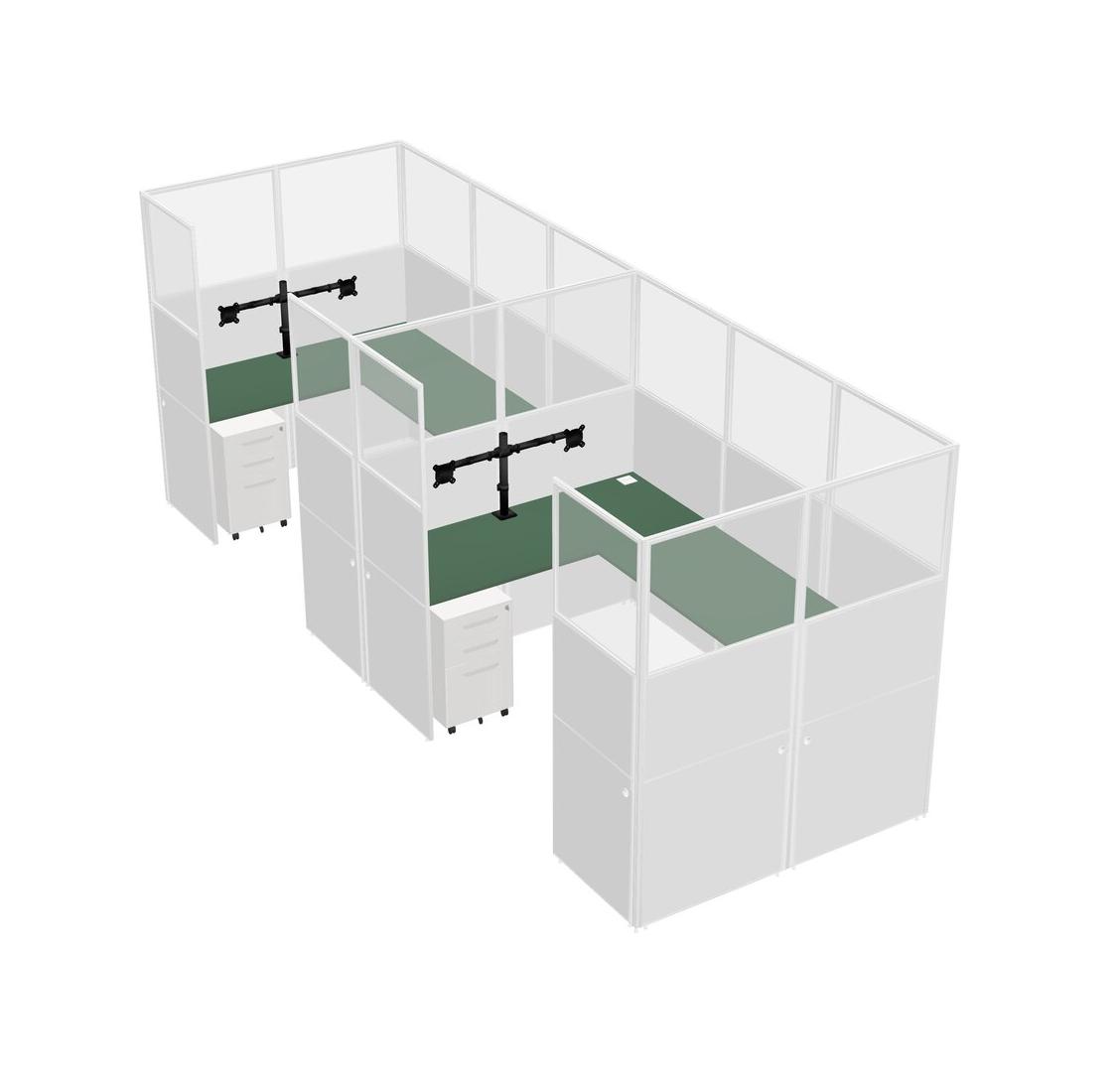 Green U-shaped Panel System For 2 Person + Monitor Arm (double Arms) + Metal Mobile Drawers For 2 User(s)