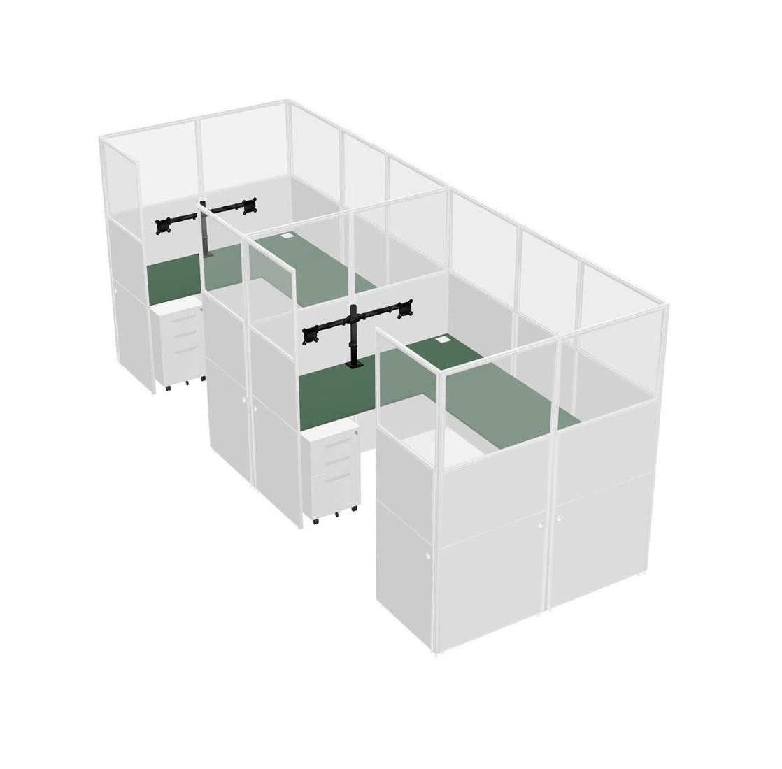 Green U-shaped Panel System For 2 Person + Monitor Arm (double Arms) + Metal Mobile Drawers For 2 User(s)