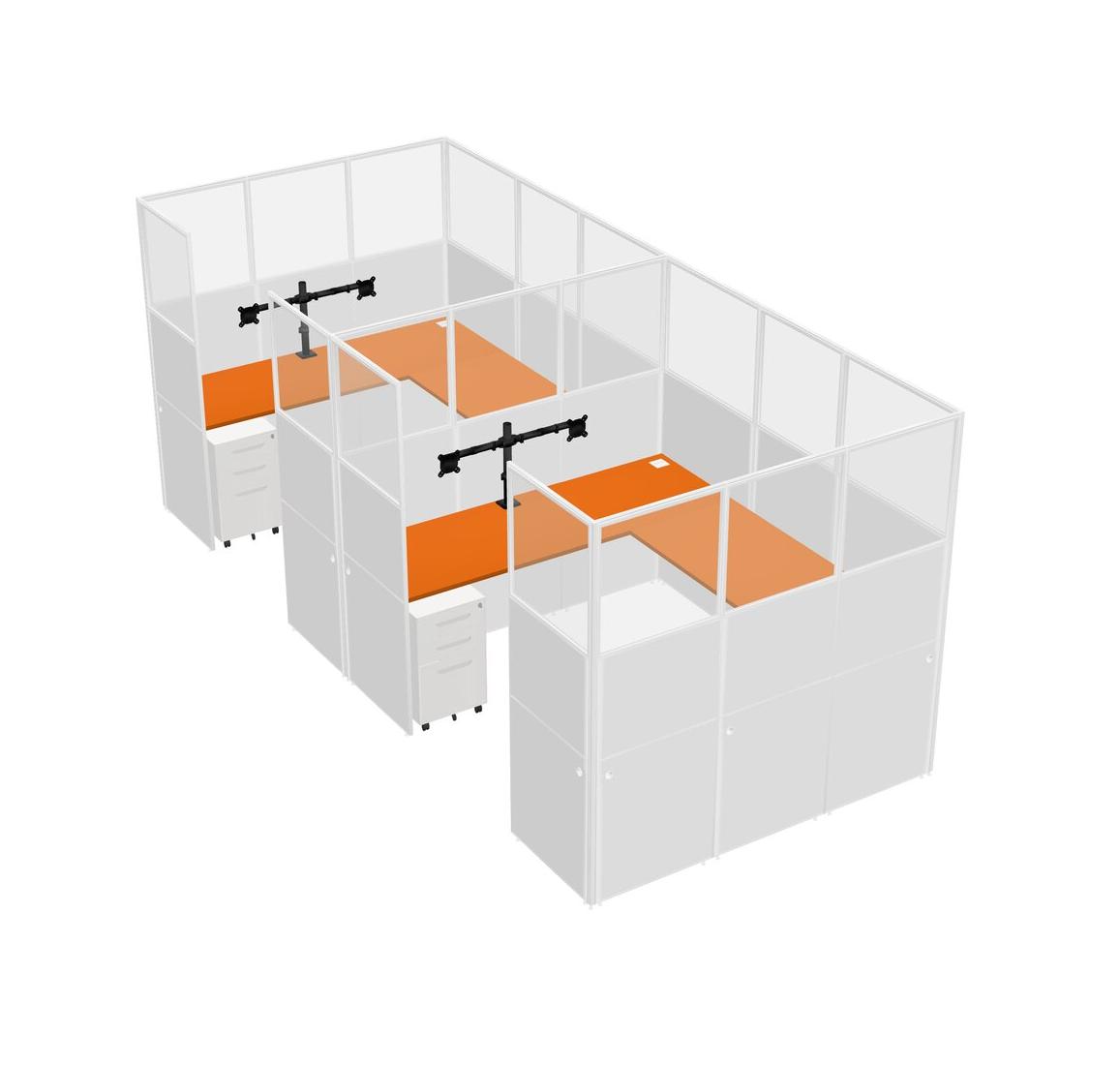 Orange U-shaped Panel System For 2 Person + Monitor Arm (double Arms) + Metal Mobile Drawers For 2 User(s)