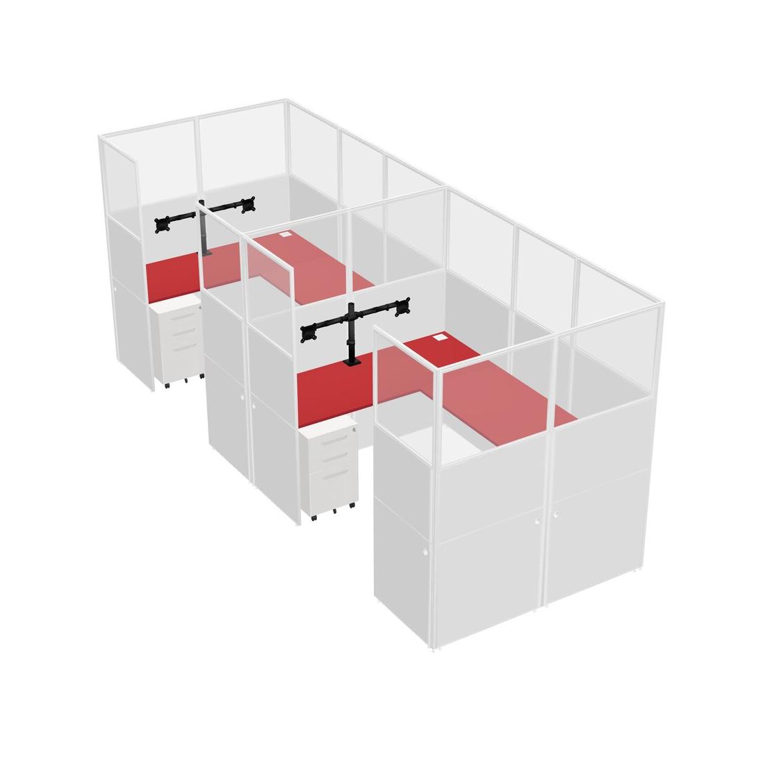 Prism Red U-shaped Panel System For 2 Person + Monitor Arm (double Arms) + Metal Mobile Drawers For 2 User(s)