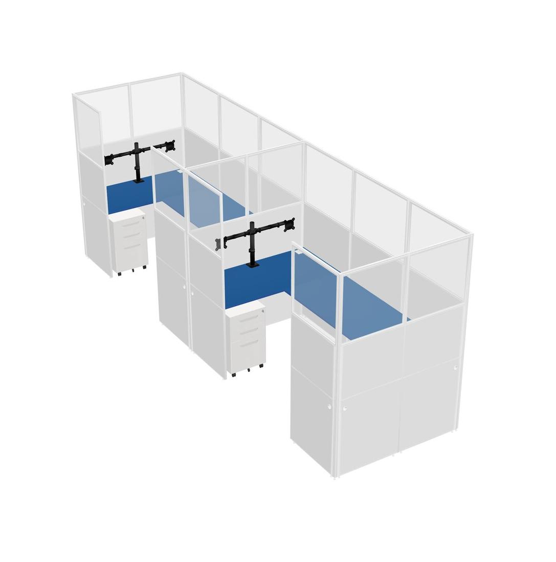 Prism Blue U-shaped Panel System For 2 Person + Monitor Arm (double Arms) + Metal Mobile Drawers For 2 User(s)