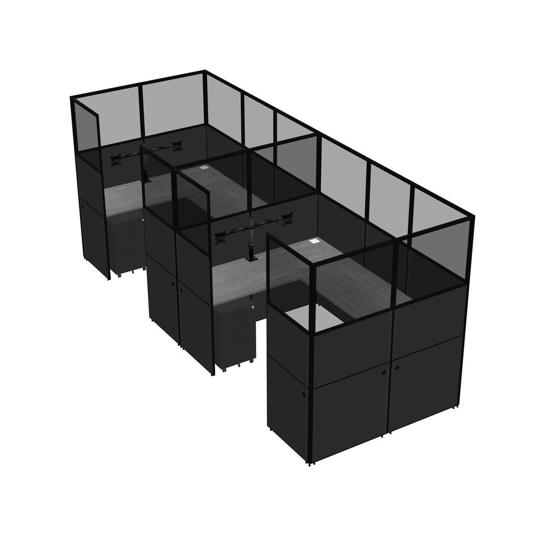Grey U-shaped Panel System For 2 Person + Monitor Arm (double Arms) + Metal Mobile Drawers For 2 User(s)