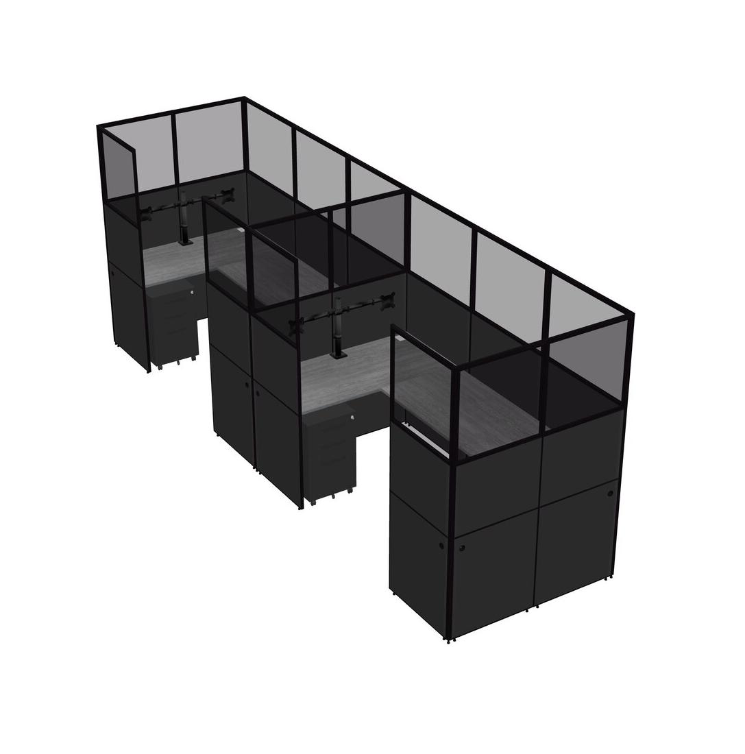 Grey U-shaped Panel System For 2 Person + Monitor Arm (double Arms) + Metal Mobile Drawers For 2 User(s)
