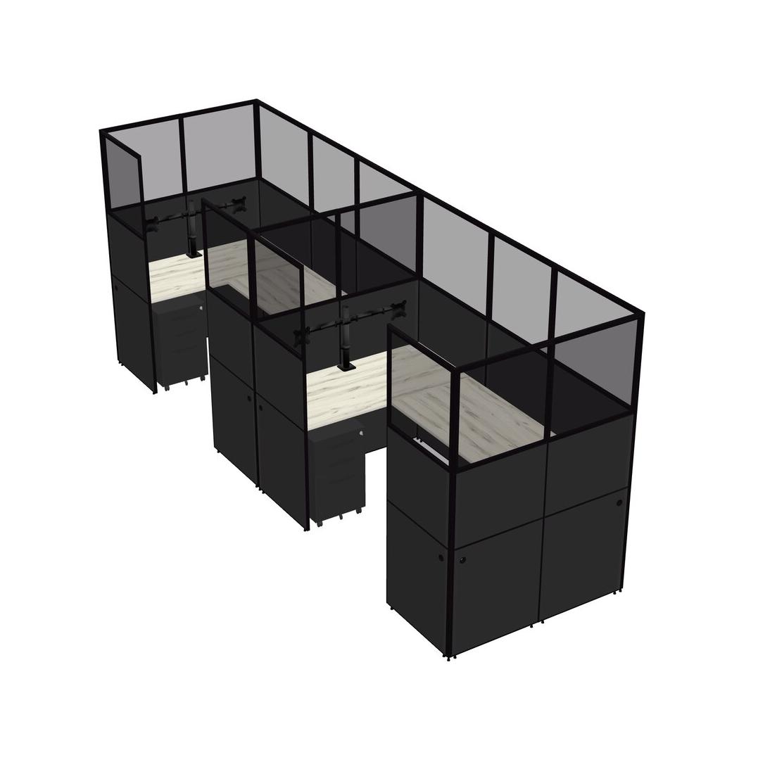 Heinne Holz U-shaped Panel System For 2 Person + Monitor Arm (double Arms) + Metal Mobile Drawers For 2 User(s)