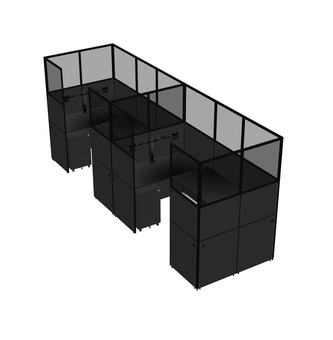 Black U-shaped Panel System For 2 Person + Monitor Arm (double Arms) + Metal Mobile Drawers For 2 User(s)