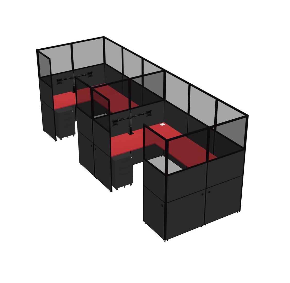 Prism Red U-shaped Panel System For 2 Person + Monitor Arm (double Arms) + Metal Mobile Drawers For 2 User(s)