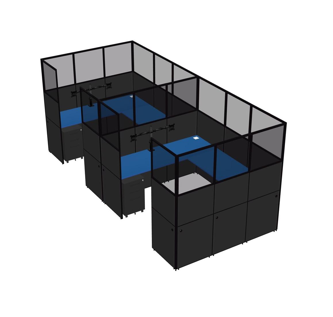 Prism Blue U-shaped Panel System For 2 Person + Monitor Arm (double Arms) + Metal Mobile Drawers For 2 User(s)