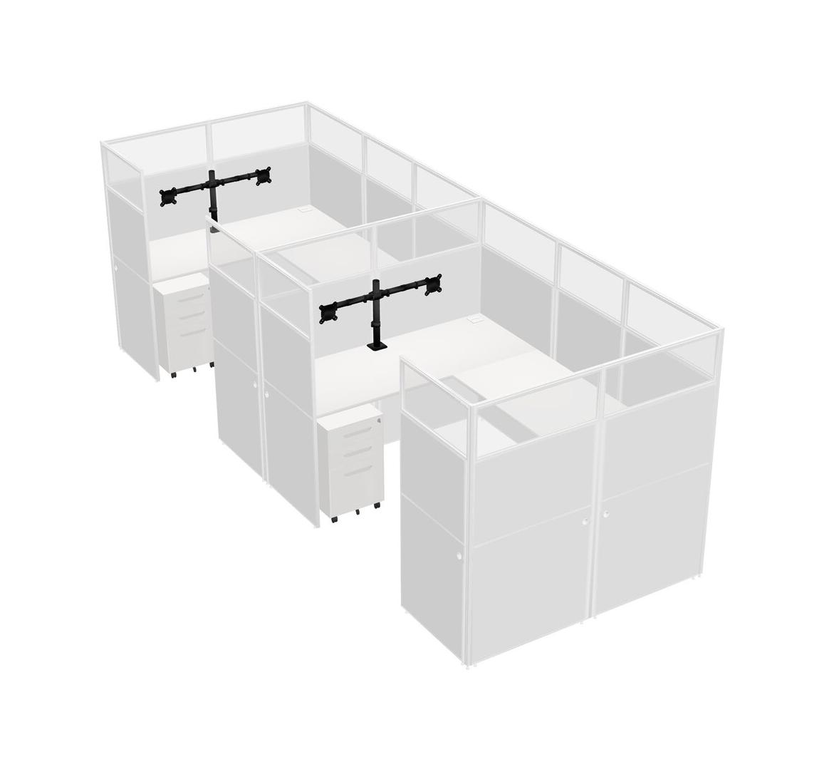 White U-shaped Panel System For 2 Person + Monitor Arm (double Arms) + Metal Mobile Drawers For 2 User(s)