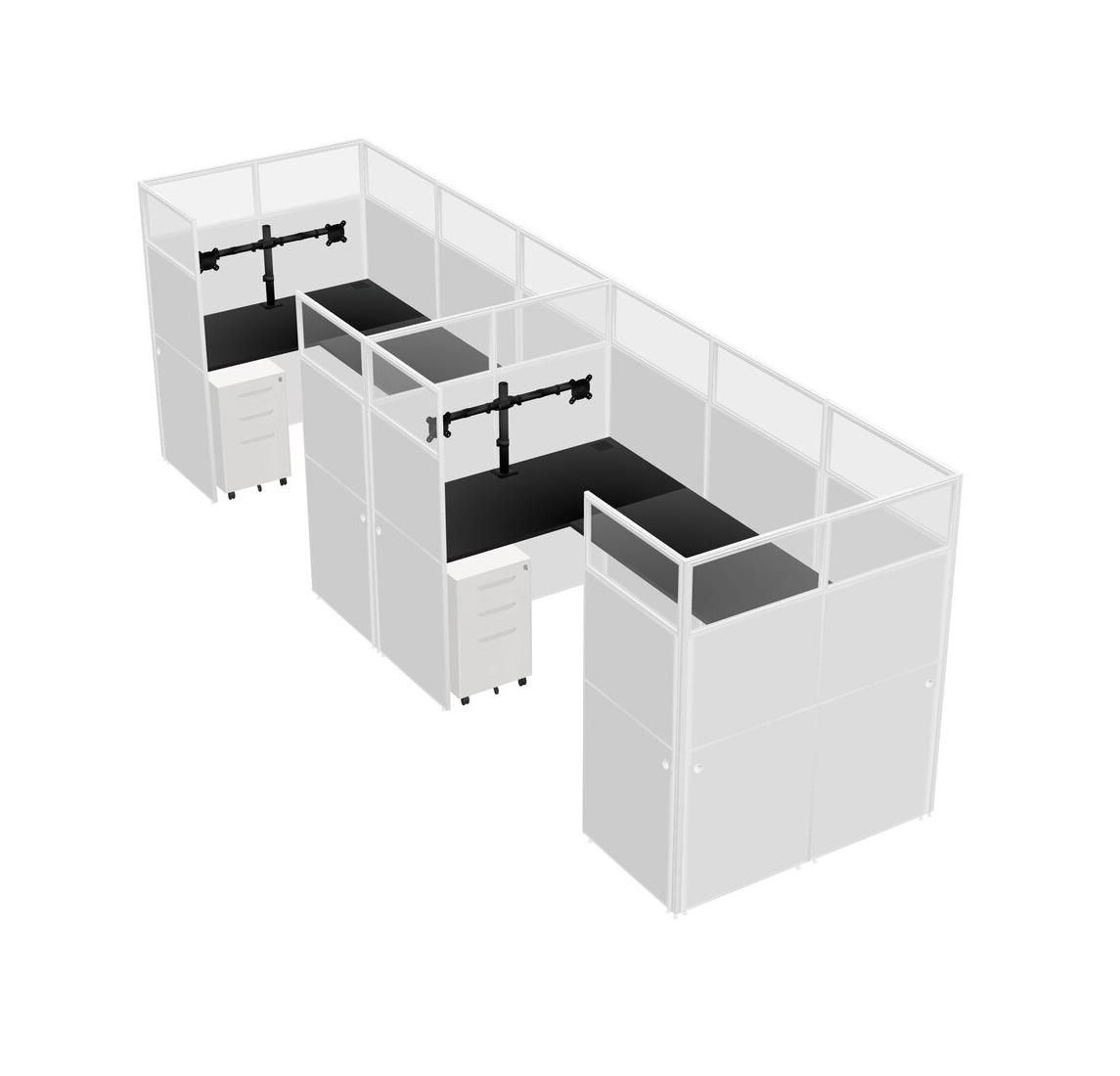 Black U-shaped Panel System For 2 Person + Monitor Arm (double Arms) + Metal Mobile Drawers For 2 User(s)