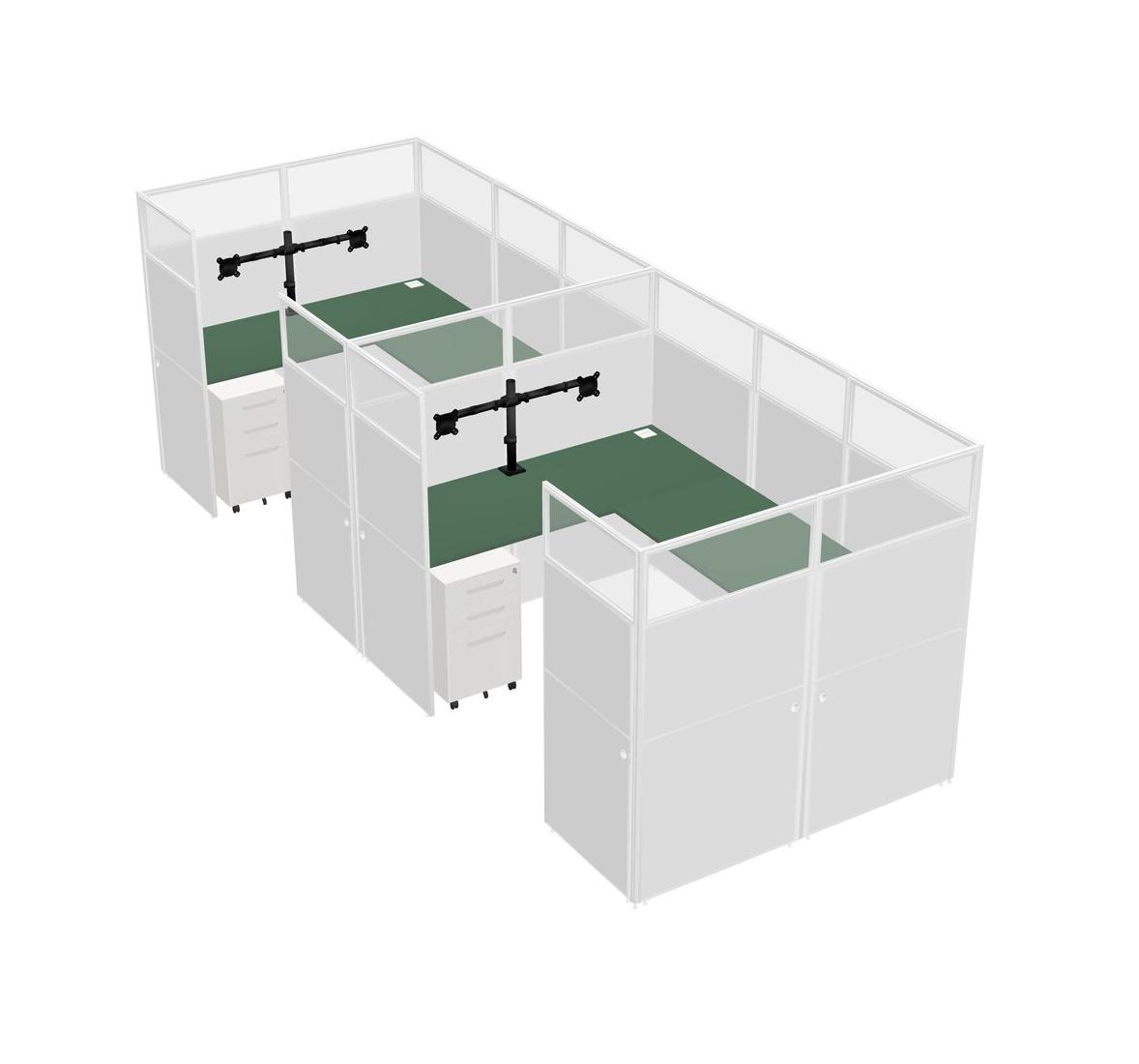 Green U-shaped Panel System For 2 Person + Monitor Arm (double Arms) + Metal Mobile Drawers For 2 User(s)