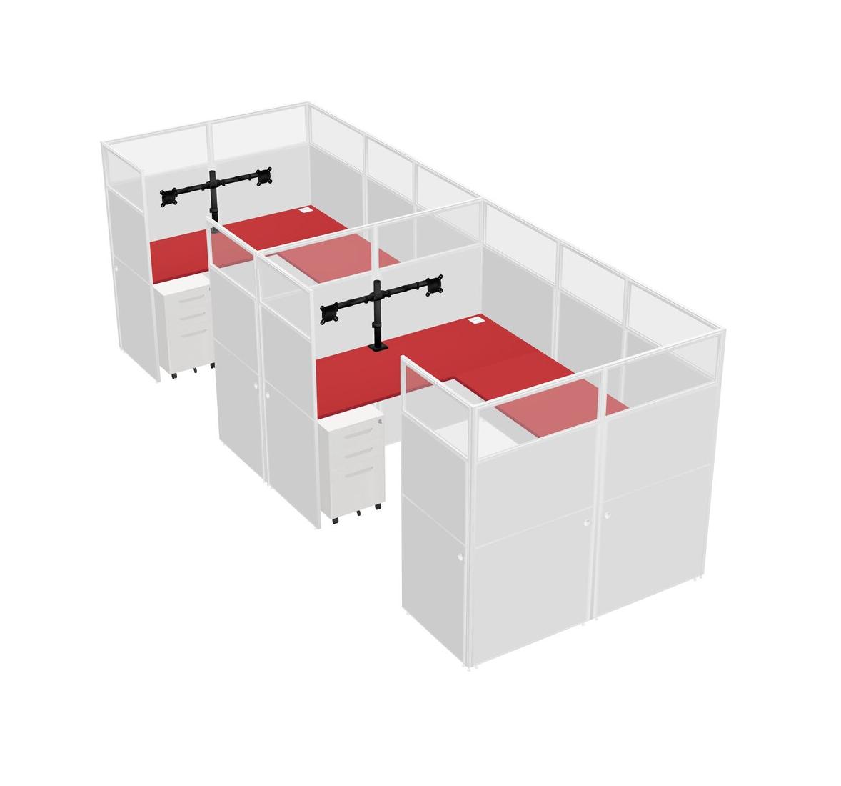 Prism Red U-shaped Panel System For 2 Person + Monitor Arm (double Arms) + Metal Mobile Drawers For 2 User(s)
