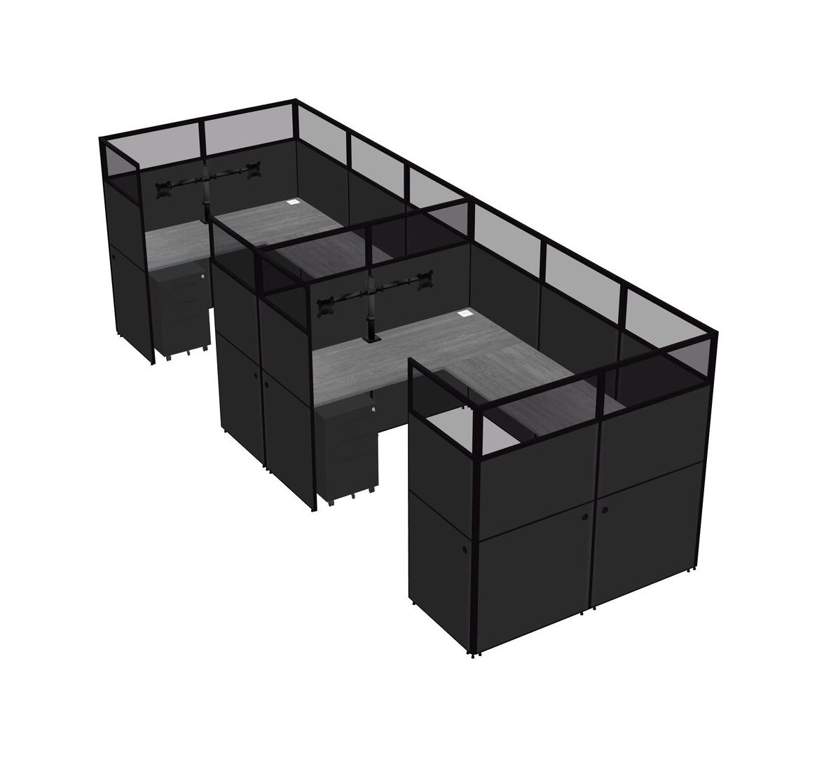 Grey U-shaped Panel System For 2 Person + Monitor Arm (double Arms) + Metal Mobile Drawers For 2 User(s)