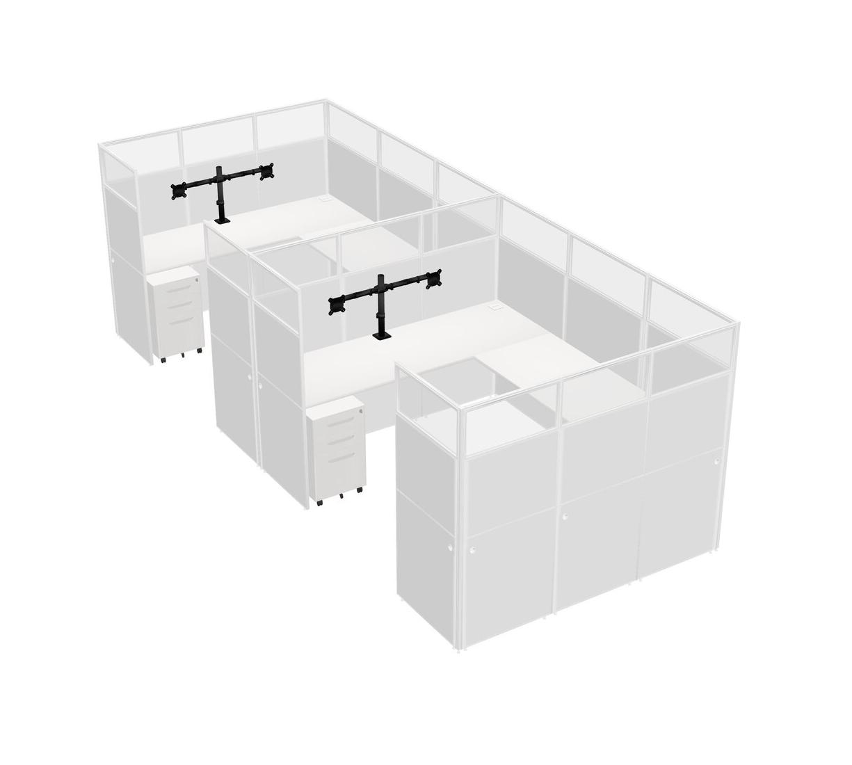 White U-shaped Panel System For 2 Person + Monitor Arm (double Arms) + Metal Mobile Drawers For 2 User(s)