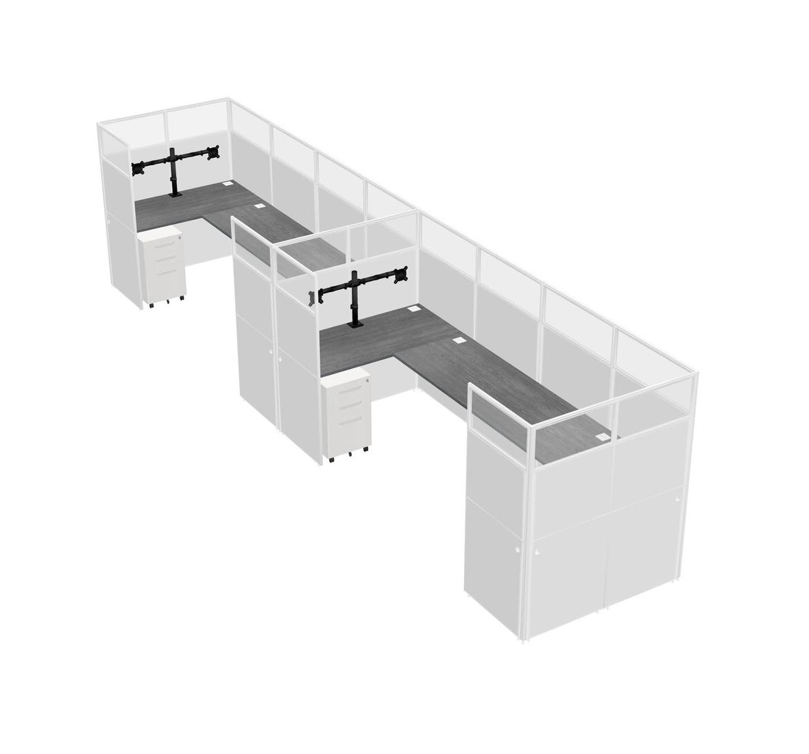 Grey U-shaped Panel System For 2 Person + Monitor Arm (double Arms) + Metal Mobile Drawers For 2 User(s)