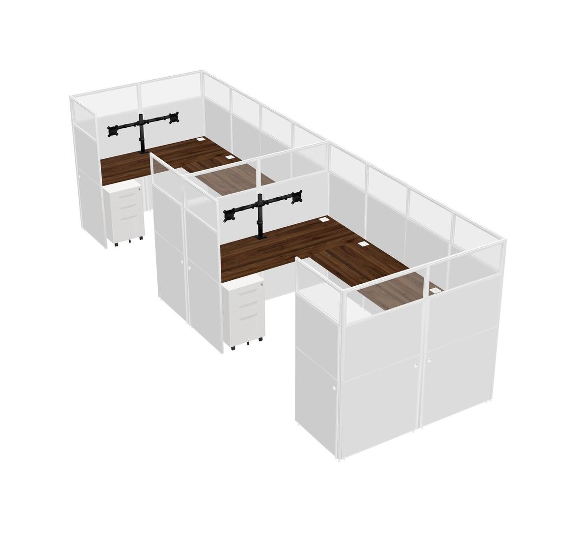 Columbia Walnut U-shaped Panel System For 2 Person + Monitor Arm (double Arms) + Metal Mobile Drawers For 2 User(s)
