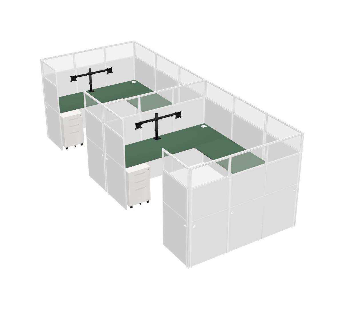 Green U-shaped Panel System For 2 Person + Monitor Arm (double Arms) + Metal Mobile Drawers For 2 User(s)