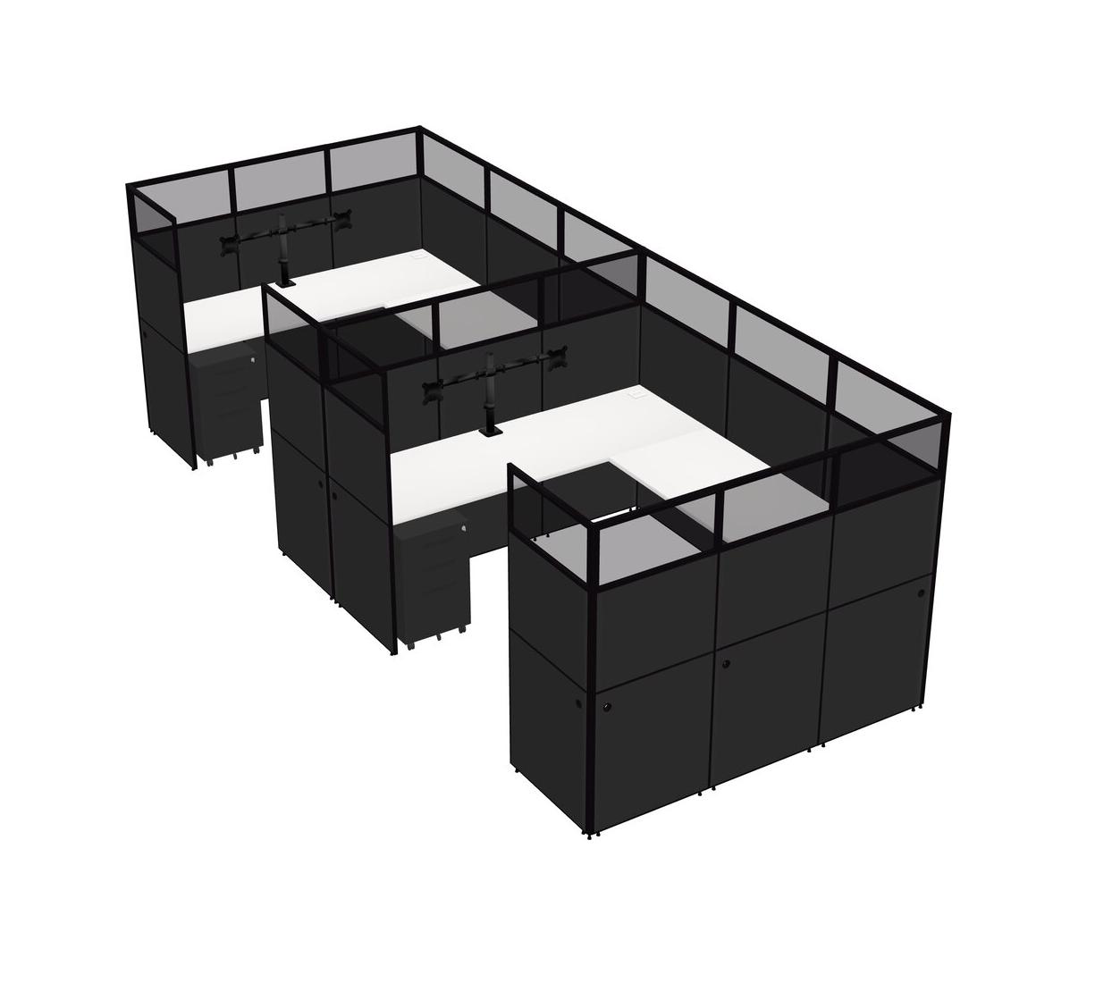 White U-shaped Panel System For 2 Person + Monitor Arm (double Arms) + Metal Mobile Drawers For 2 User(s)