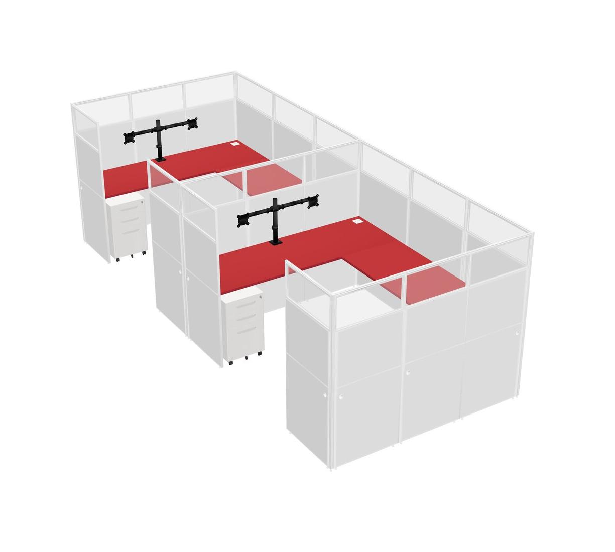 Prism Red U-shaped Panel System For 2 Person + Monitor Arm (double Arms) + Metal Mobile Drawers For 2 User(s)