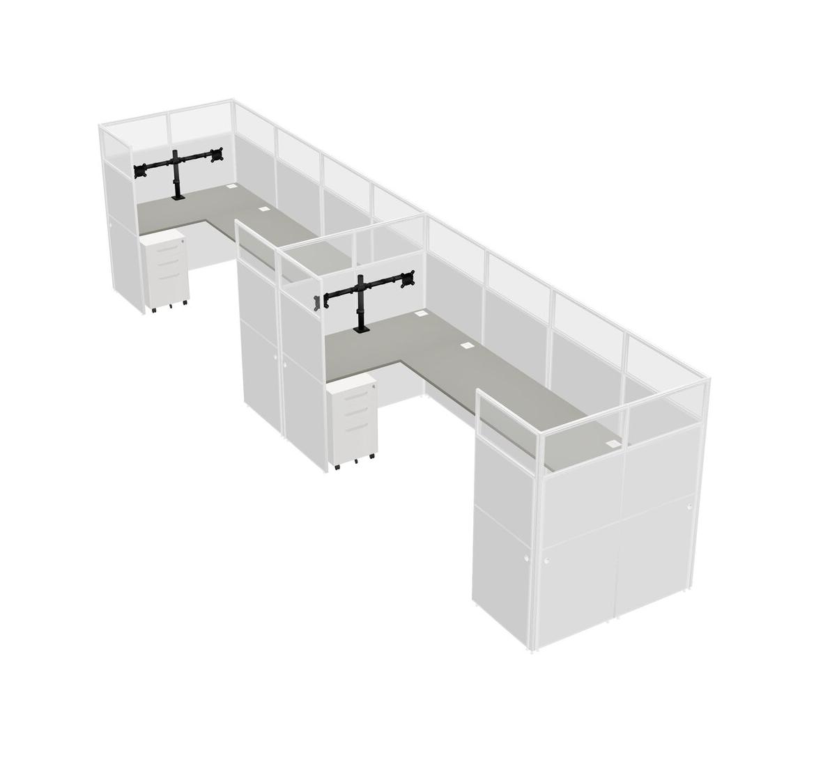 Grey Shadows U-shaped Panel System For 2 Person + Monitor Arm (double Arms) + Metal Mobile Drawers For 2 User(s)