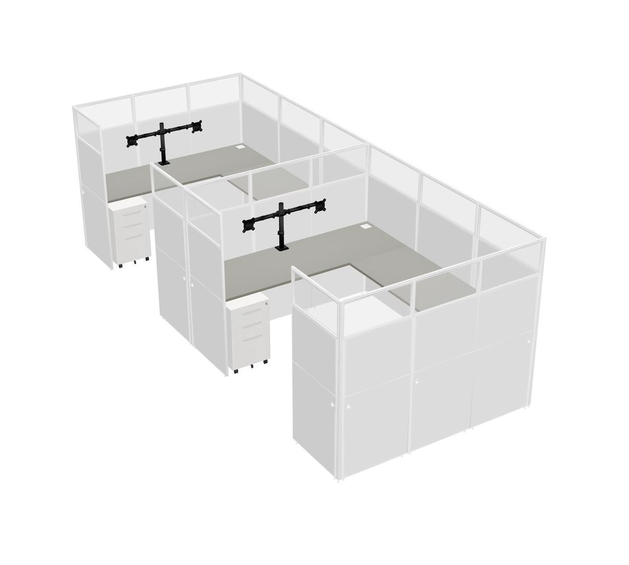 Grey Shadows U-shaped Panel System For 2 Person + Monitor Arm (double Arms) + Metal Mobile Drawers For 2 User(s)