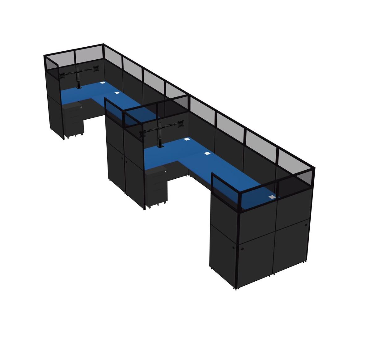 Prism Blue U-shaped Panel System For 2 Person + Monitor Arm (double Arms) + Metal Mobile Drawers For 2 User(s)