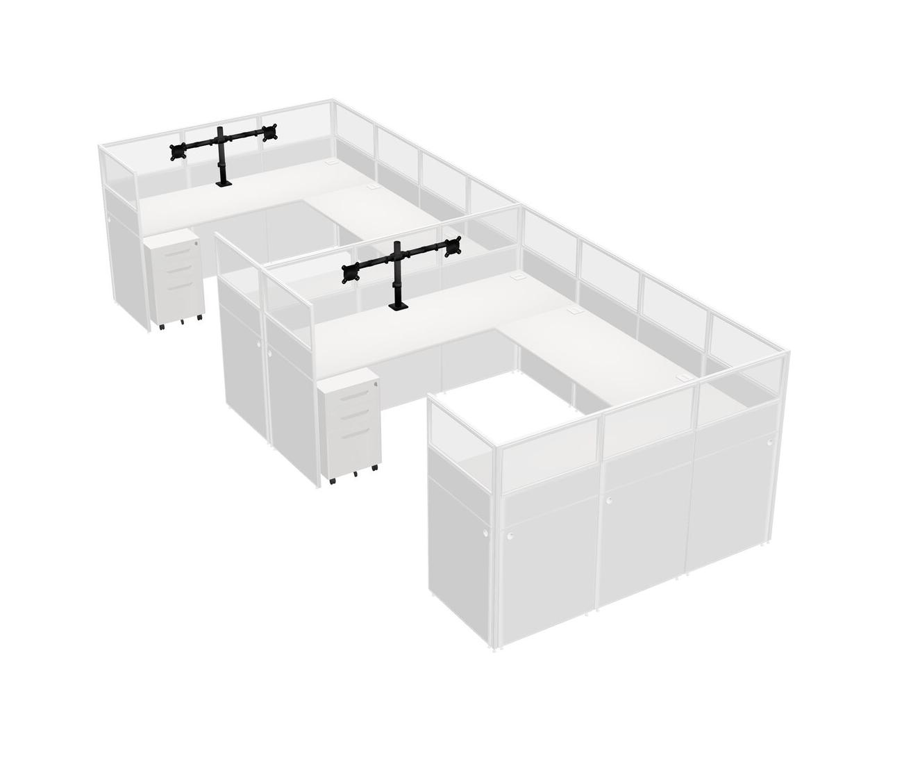 White U-shaped Panel System For 2 Person + Monitor Arm (double Arms) + Metal Mobile Drawers For 2 User(s)