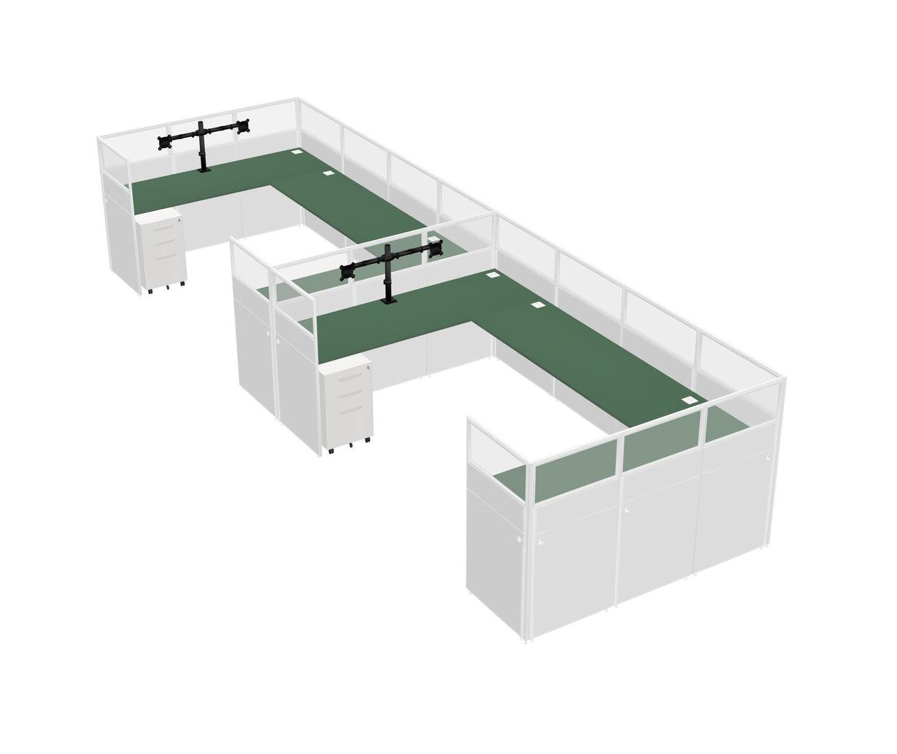 Green U-shaped Panel System For 2 Person + Monitor Arm (double Arms) + Metal Mobile Drawers For 2 User(s)