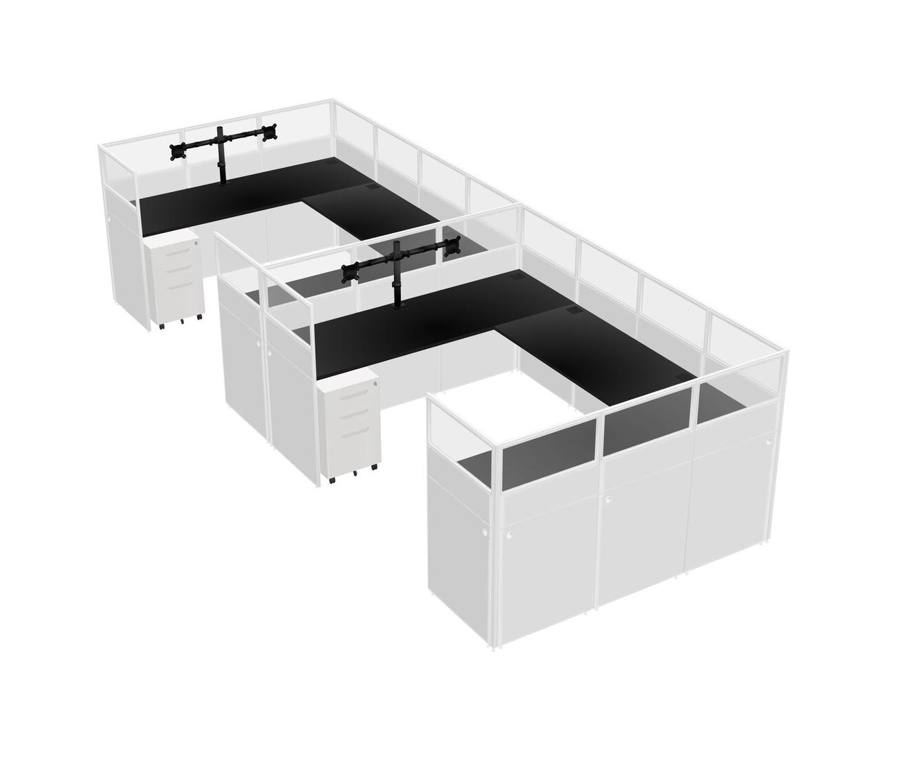 Black U-shaped Panel System For 2 Person + Monitor Arm (double Arms) + Metal Mobile Drawers For 2 User(s)